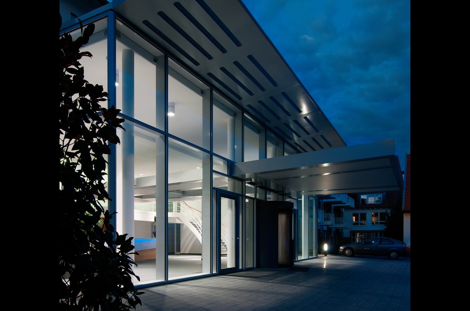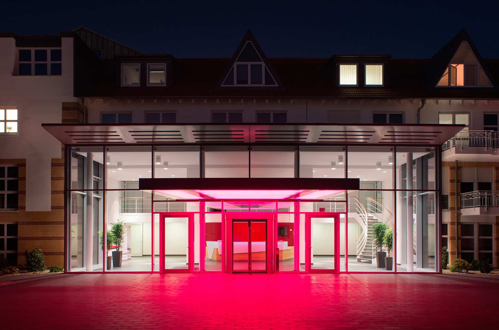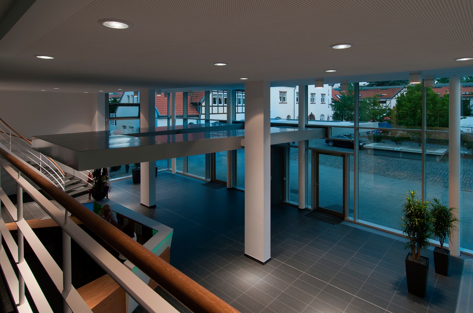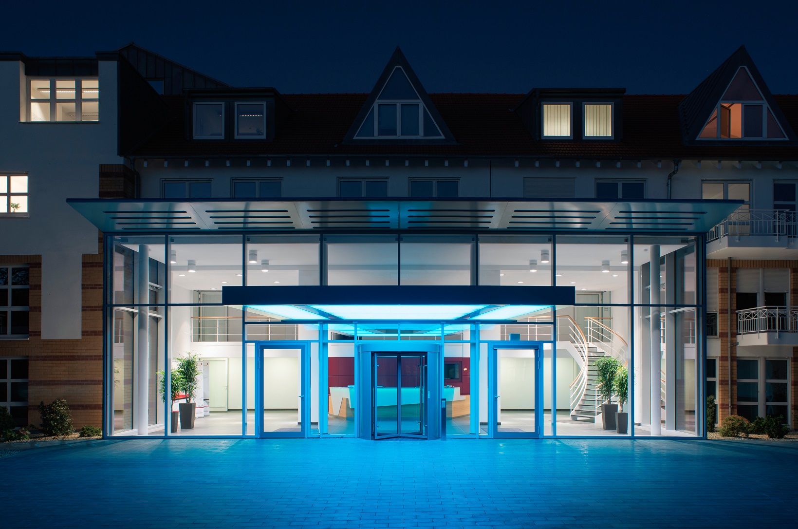 Gläserner Vorbau als Erweiterung der Eingangshalle und Teilentkernung