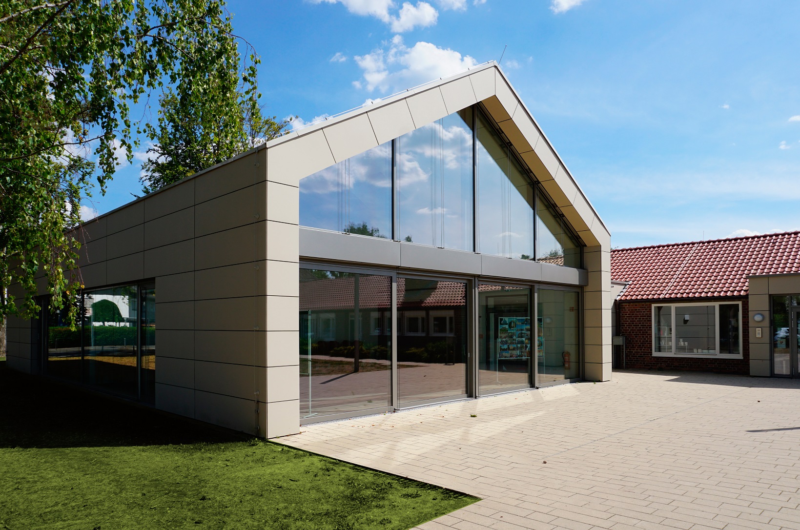 Um- und Neubau Gemeindesaal, Kindergarten, Pfarrwohnungen. 1. Preis Wettbewerb